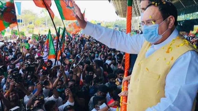 ജെ.പി നദ്ദയ്ക്ക് ഉജ്ജ്വല വരവേൽപ്പ് ; തെരഞ്ഞെടുപ്പിന് ഒരുങ്ങി ബി.ജെ.പി