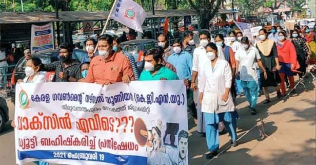 രണ്ട് മണിക്കൂര് ഡ്യൂട്ടി ബഹിഷ്കരിച്ച് നഴസുമാരുടെ പ്രതിഷേധം; തിരുവനന്തപുരം മെഡിക്കല് കോളേജിലെ 70% നഴ്സുമാര്ക്കും ഇനിയും വാക്സിനേഷന് നല്കിയില്ല;കോവിഡ് വാക്സിനേഷന് നടപടികള് ഉടന് നടപ്പിലാക്കുണമെന്ന് കേരള ഗവ നഴ്സസ് യൂണിയന്